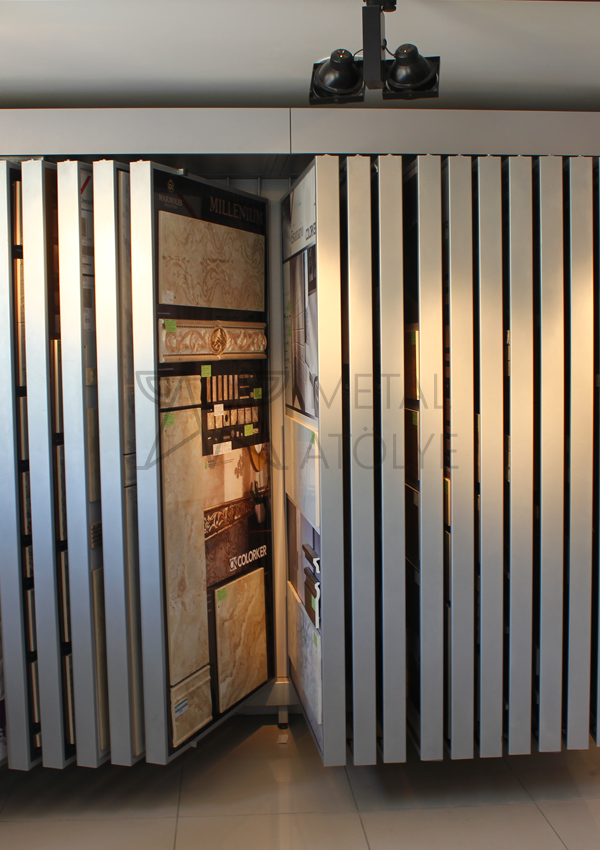 Ürünlerin sunuma hazır olarak tasarlanmış Yanlara çekmeli standlarımız Farklı normları içeriğinde barındırır.